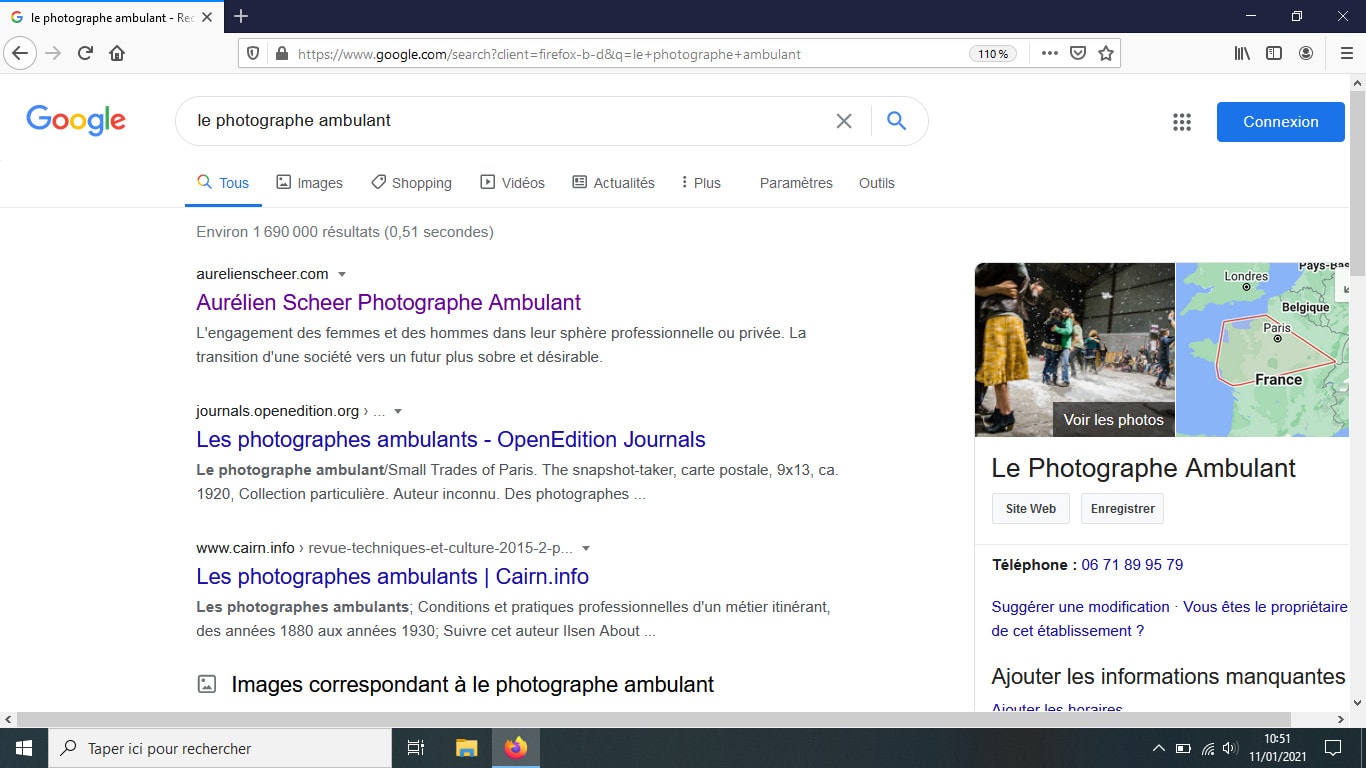 Après plusieurs mois listés en seconde partie de tableau, le site du photographe ambulant apparaît désormais en tête de liste du célèbre moteur de recherche. Retour sur le processus de création du site internet et remerciements des organismes et personnes qui ont contribué à ce succès